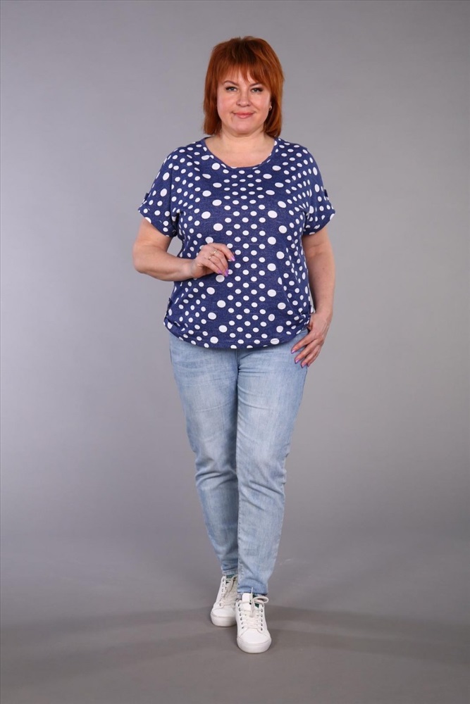Легкая блузка свободного кроя с округлым вырезом горловины. Низ рукава с отложными манжетами и декоративными патами с пуговицами. Также паты с пуговицами по низу изделия. Эффектная модель, которая подчёркивает достоинства фигуры. Хорошо сочетается с классическими брюками, джинсами, юбками и жакетами. Материал изделия хорошо держит форму и приятен к телу.