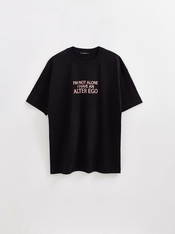 Удлиненная oversize-футболка из хлопка с рисунком «Alter ego» станет основой для множества расслабленных базовых образов, а стильный рисунок добавит вашему повседневному гардеробу больше индивидуальности. Обратите внимание: модель универсального размера, поэтому подойдет и женщинам, и мужчинам.
