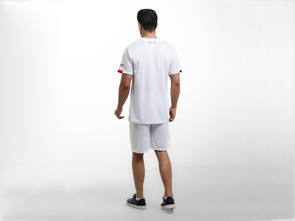 с мировым именем. Включает футболку с коротким рукавом и шорты, украшенные официальной