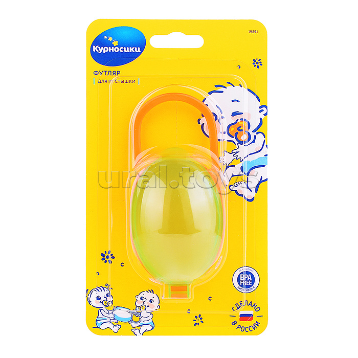 Предназначен для хранения пустышки. Удобное разъёмное кольцо, которое позволяет прикрепить футляр на ручку коляски, сумки или кроватки Материал: полипропилен.