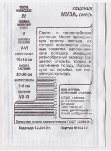 Однолетнее растение высотой 20 - 30 см. Имеет прикорневую розетку листьев, из которой появляются изящные соцветия очень напоминающие ромашку со слегка отогнутыми лепестками, имеющие разнообразную окраску. Соцветия открыты только в солнечную погоду. Выращивают рассадным способом. Всходы появляются на 10 - 14 день. Гацания очень любит солнце, умеренный полив и подкормки каждые 2 недели. Используют на клумбах, бордюрах, рабатках. Выращивают гацанию и как горшечную культуру.