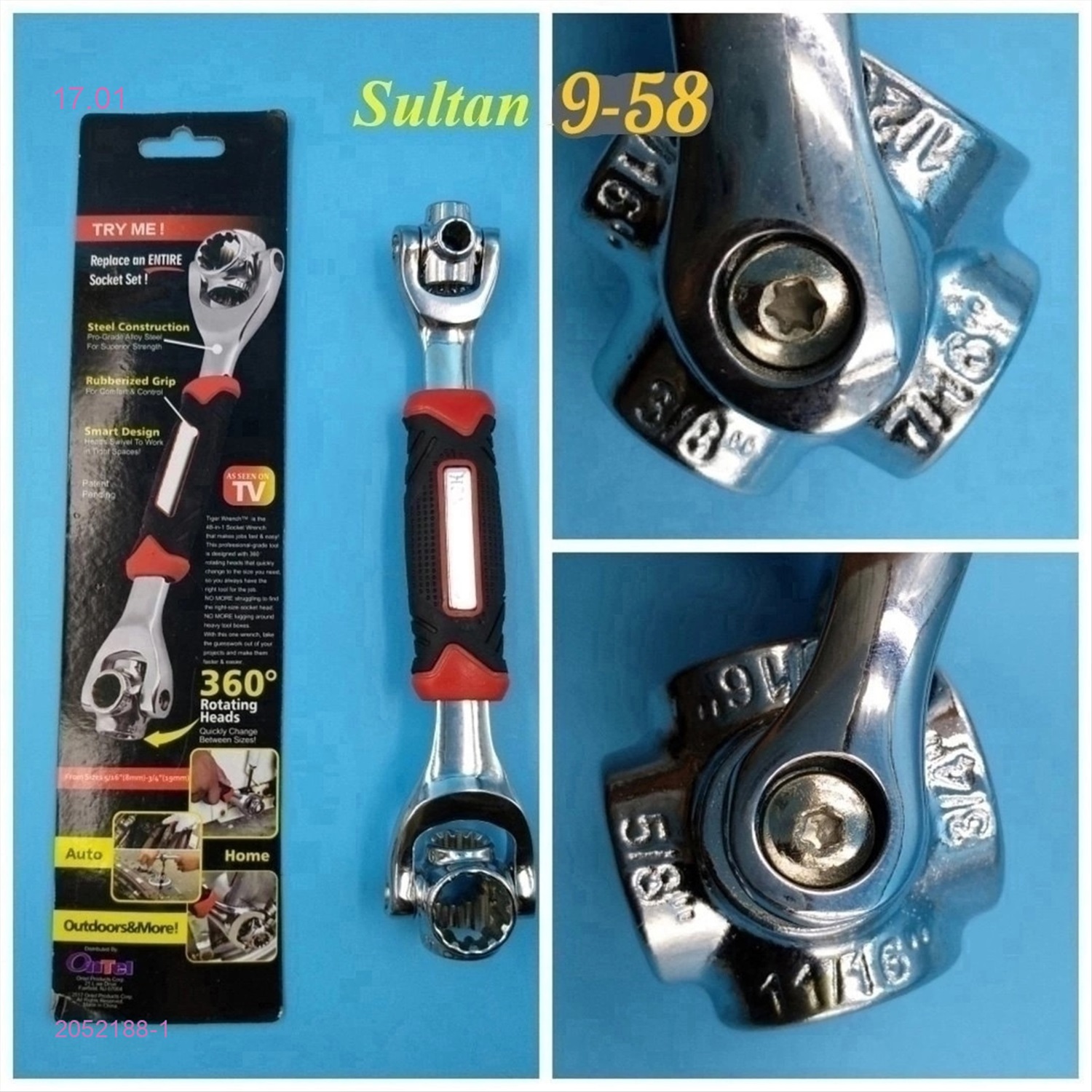 Новое слово в мире инструментов для ремонта автомобилей и дома. Уникальный торцевой ключ заменяет сразу 48 инструментов. Только представьте, сколько места в багажнике или дома вы экономите! Просто меняйте размеры, чтобы выбирать любой ключ. В отличие от других гаечных ключей, Tiger Wrench позволяет работать под углом 45°. Его головка вращается на 360°. Комментарии к товару