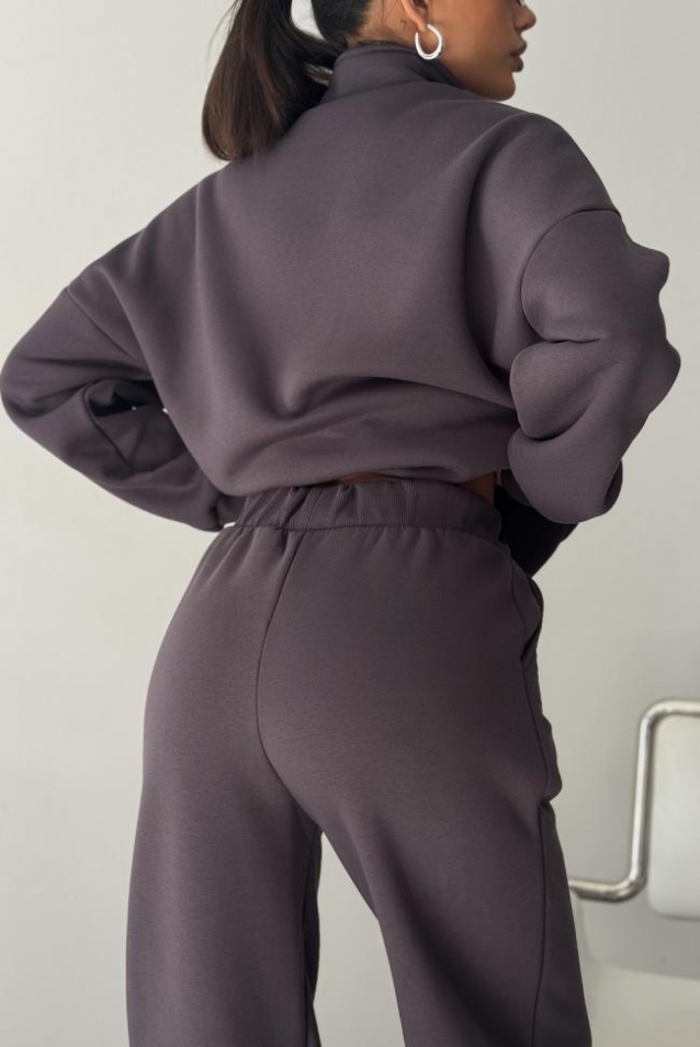 Теплый женский спортивный костюм отличный выбор в качестве базовой одежды для зимы и холодного демисезонного периода! Комплект - двойка из коллекции включает свитшот с длинными рукавами и брюки с высокой посадкой. Модели сшиты из мягкого и приятного к телу футера. Это плотный материал, который приятно согревает и отлично дышит. В составе ткани хлопок и полиэстер. Вещи имеют прямой крой и свободно сидят по фигуре.