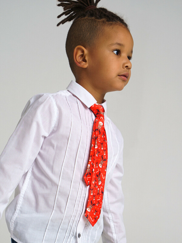 Аксессуар для новогоднего образа – атласный галстук с принтом. Удобная застёжка поможет быстро и просто надеть или снять элегантный аксессуар.