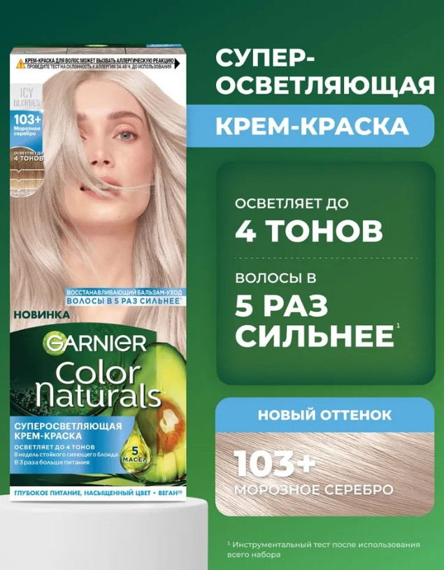 Суперосветляющая крем-краска для волос Color Naturals, оттенок 103+ Морозное серебро. Комментарии к товару