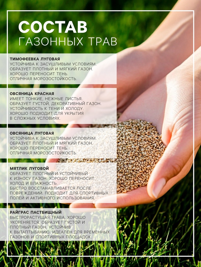 Габариты: 80 x 45 x 17 Доставка: Платная Страна: Россия В боксе: 1 шт Состав: Семена Материалы: семена Фасовка: по 1 шт Индивидуальная упаковка: Без упаковки Сертификат: РСТ Вес, кг: 25 Площадь, м²: 750 Посев (посадка) в грунт: Август, Июнь, Май, Сентябрь Место выращивания: Открытый грунт Особенности газона: Универсальный Состав газонных трав: Овсяница луговая, Тимофеевка луговая, Овсяница красная, Мятлик луговой, Райграс пастбищный Вид: Семечки Вес/Объём: 25 кг Универсальная травосмесь для создания неприхотливого газона в любых экологических условиях и на любых типах почв. Высота скашивания 6-8 см. Купить универсальную траву для газона - отличное решение. В этой травосмеси состав многолетних трав подобран так, чтобы подходить практически для любых почв. Эта газонная трава пригодна для любого использования. Универсальный газон можно высевать и на детских площадках, и на придомовых территориях, так как он устойчив к вытаптыванию и к многократному скашиванию. Это сочетание трав образует красивый ровный зеленый ковер и достаточно прочную дернину, что позволяет использовать универсальную травосмесь и на склонах. Универсальная газонная трава используется и на открытых и хорошо освещенных местностях и на довольно затененных. Эта смесь хороша тем, что достаточно неприхотлива и не требует регулярного ухода. Комментарии к товару