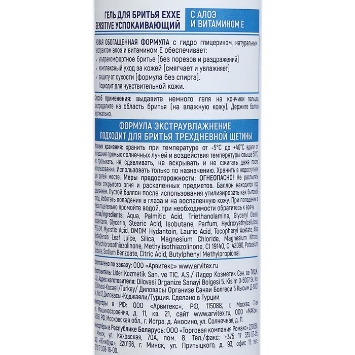 Гель для бритья EXXE SENSETIVE смягчает и увлажняет Вашу кожу и щетину, обеспечивая комфортное скольжение. Легко справляется с густой щетиной. Содержит максимум натуральных компонентов, которые еще глубже проникают в слои кожи, питают и насыщают её. Аллантоин подтягивает кожу, заживляет порезы, снимает раздражение, витамин Е защищает от токсинов. Гель EXXE имеет ненавязчивый и приятный мужской аромат.