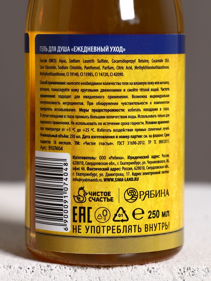 Состав: Aqua, Sodium Laureth Sulfate, Cocamidopropyl Betaine, Cocamide DEA, Coco Glucoside, Sodium Chloride, Panthenol, Parfum, Citric Acid, Methylchloroisothiazolinone, Methylisothiazolinone, Cl 19140, Cl 15985, Cl 14720, Cl 42090