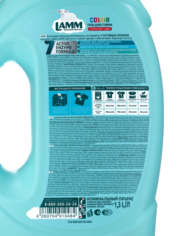 Габариты: 15 x 7,5 x 28 Доставка: Платная Страна: Россия В боксе: 8 шт Состав: См. на упаковке Материалы: см. на упаковке Фасовка: по 1 шт Индивидуальная упаковка: Без упаковки Сертификат: СТР Объём, л: 1,3 Назначение: Для всех видов тканей, Для цветных тканей Вид стирки: Для всех видов стирки Гель для стирки LAMM Color разработан специально для бережного ухода за цветными тканями. Его формула сохраняет насыщенность красок и защищает вещи от выцветания даже после многократных стирок. Концентрированное средство эффективно удаляет загрязнения, быстро выполаскивается и не оставляет разводов. Подходит для всех типов цветных тканей, включая хлопок, лен, синтетику и смешанные волокна. Преимущества:
