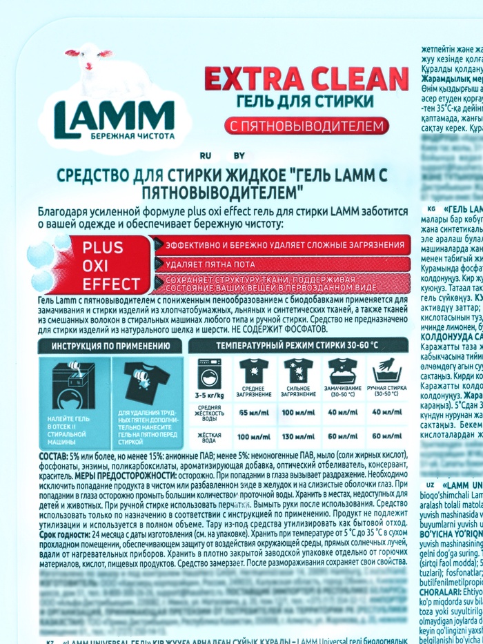 Применение Гель подходит для машинной и ручной стирки. Рекомендуется использовать согласно инструкции на упаковке, дозируя средство в зависимости от степени загрязнения и объёма белья. Для кого LAMM с пятновыводителем создан для тех, кто ценит безупречную чистоту и заботу о вещах. Средство идеально подходит для регулярной стирки и помогает поддерживать одежду и текстиль в идеальном состоянии. Комментарии к товару