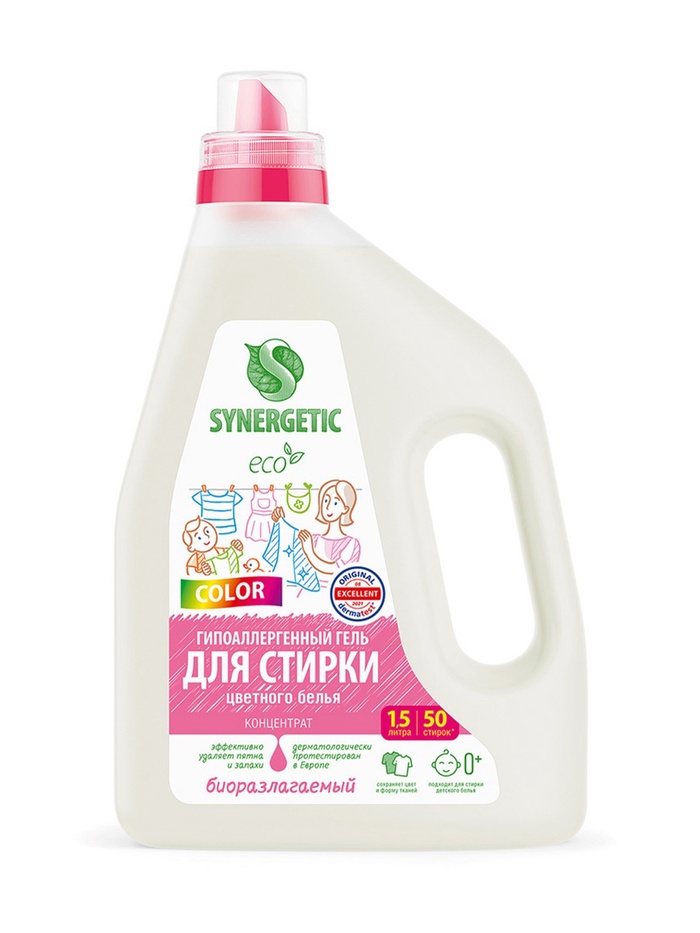 Габариты: 16 x 8,5 x 27 Доставка: Платная Страна: Россия В боксе: 6 шт Состав: См. на упаковке Материалы: см. на упаковке Фасовка: по 1 шт Индивидуальная упаковка: Без упаковки Сертификат: СТР Объём, л: 1,5 Назначение: Для всех видов тканей Вид стирки: Автомат Темпер. ограничение НЕ НИЖЕ ℃: 0 Особенности средства: Концентрат Фиксированная цена: Да Биоразлагаемый концентрированный гель для стирки всех видов тканей SYNERGETIC 3 IN 1 с ароматом "Магическая орхидея" предназначен для стирки всех видов тканей, кроме деликатных и мембранных, а также шерсти и шелка. Формула 3 в 1 обеспечивает бережное и эффективное очищение тканей, гигиеническую чистоту одежды и устраняет неприятные запахи. Средство можно использовать в стиральных машинах любого типа и при ручной стирке при температуре 15 - 90 °C. Комбинация энзимов и растительных ПАВ эффективно удаляет трудновыводимые и свежие пятна с волокон ткани даже в холодной воде. Функциональные добавки заботятся о ткани, предотвращают окрашивание, сохраняя первоначальный вид, насыщенность цвета, прочность и структуру материала. Гипоаллергенная отдушка на основе эфирных масел апельсина и гвоздики оставляет легкий и приятный аромат. Гель предназначен для стирки всех видов тканей, кроме деликатных и мембранных, а также шерсти и шелка. Биоразлагаемый гель полностью выполаскивается из тканей, подходит для стирки детского белья 0+ и одежды людей с чувствительной кожей. При машинной стирке добавьте 2 колпачка (60 мл) геля на 4 - 5 кг белья в отсек стиральной машины, предназначенный для моющего средства (если иное не прописано в инструкции для стиральной машины). Закройте отсек и включите стиральную машину в соответствии с инструкцией. Для стирки сильно загрязнённого белья и при высокой жёсткости воды используйте 4 колпачка средства (120 мл). При ручной стирке добавьте 1 - 2 колпачка (30 - 60 мл) геля на 5 литров воды, затем положите бельё и постирайте; для стирки сильно загрязнённого белья и при высокой жёсткости воды используйте 4 колпачка (120 мл) геля. Соблюдайте режим стирки, указанный на ярлыке изделия. Не наносите гель непосредственно на ткань во избежание изменения её цвета. Стирайте новые вещи отдельно, если степень устойчивости окраски ткани не известна. Не используйте для стирки шерсти, шёлка, деликатных и мембранных тканей. Рекомендуемая температура стирки - 30 - 40 °С. Беречь от детей. При попадании средства в глаза промыть водой. Использовать строго по назначению. Состав:Подготовленная вода > 30%; К-тензиды (ПАВ из растительного масла) 5–15%; парфюмерная композиция с эфирными маслами лимона, бергамота, сантала и мяты; пищевой краситель. Комментарии к товару