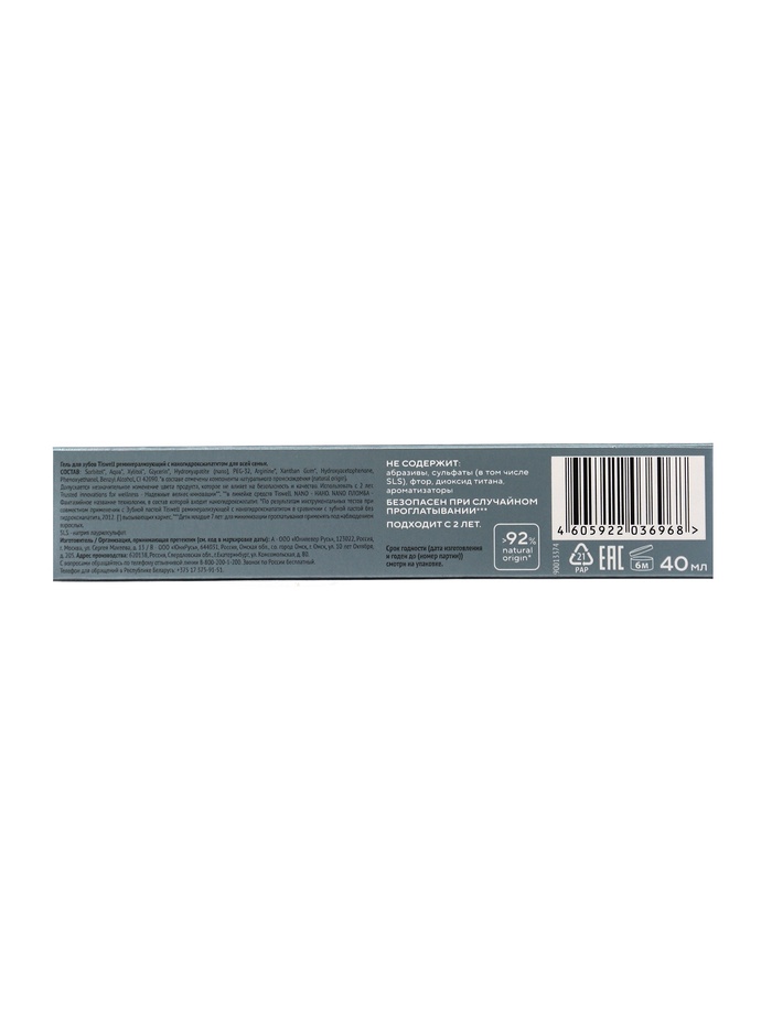 Габариты: 14,5 x 3 x 4,5 Страна: Россия В боксе: 8 шт Состав: См. на упаковке Материалы: см. на упаковке Фасовка: по 1 шт Индивидуальная упаковка: Без упаковки Сертификат: ЕАС Вес, г/Объём, мл: 40 Объём, мл: 40 Назначение: Для зубов и дёсен Возраст: Для взрослых Фиксированная цена: Да Гель для укрепления зубов реминерализирующий с наногидроксиапатитом и ксилитом, 40 мл — надёжная защита и укрепление зубов для всей семьи. Благодаря наногидроксиапатиту гель восполняет минеральные компоненты эмали, делая её более прочной и устойчивой к воздействию кислот. Ксилит способствует защите от кариеса и поддерживает естественный баланс микрофлоры полости рта. Лёгкая текстура и нейтральный вкус делают средство удобным в использовании как для взрослых, так и для детей. Регулярное применение помогает сохранить зубы крепкими, а улыбку — здоровой и сияющей. Комментарии к товару