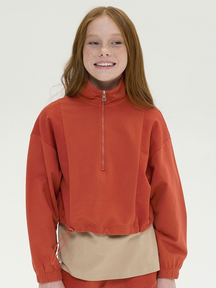 Кроп-топ из футера для девочки. 100% хлопок в составе – ткань мягкая, дышащая, приятная на ощупь. Высокий воротник-стойка выполнен из основной ткани. Тракторная молния у горловины максимально прочная, не заедает. Низ рукава собран на резинку и обработан основной тканью. Объем по линии талии регулируется эластичным шнуром с пластиковыми стопперами – можно менять силуэт по настроению и погоде. Комбинируется с джоггерами, брюками. Можно надевать на длинную футболку для создания многослойного образа на каждый день, незаменим для активного отдыха и спорта.