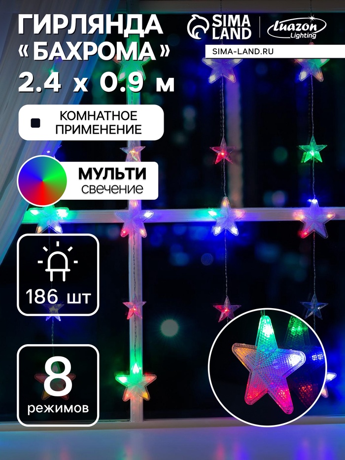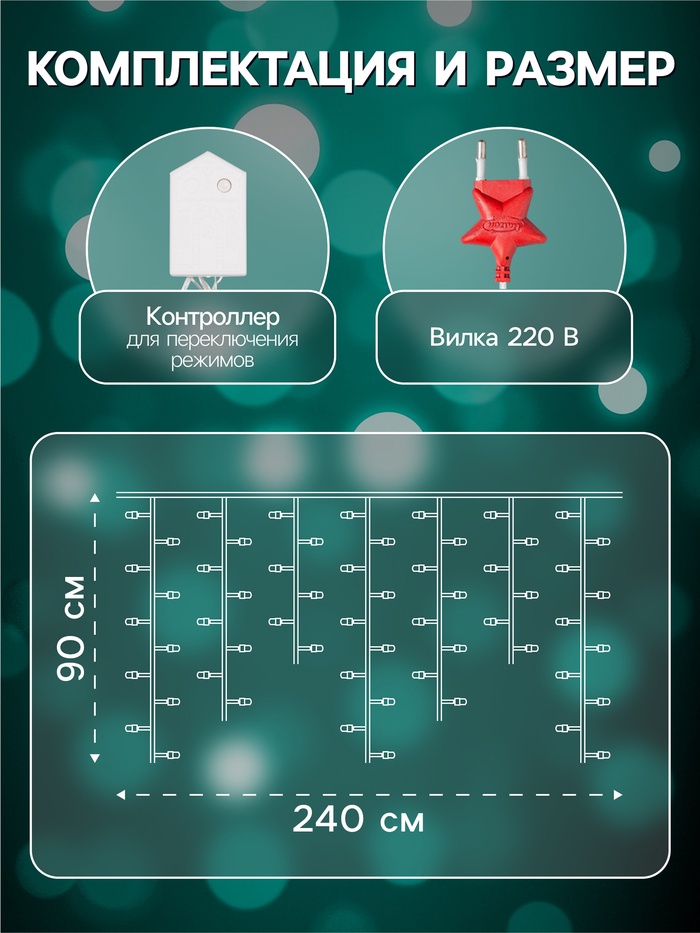 Габариты: 23 x 16 x 15 Страна: Китай В боксе: 24 шт Состав: Металл, пластик Материалы: металл, пластик Фасовка: по 1 шт Индивидуальная упаковка: Картонная коробка Сертификат: ЕАС Цвет нити гирлянды: Прозрачный Цвет свечения: Мульти Применение: Внутреннее Вид лампы: Светодиодная Материал нити: ПВХ Тип подключения: С контроллером Вид гирлянды: Бахрома Количество ламп: 186 Серия: DECOR Режим работы: Задаётся контроллером Наличие блока питания: Нет Размер, м: 2.4 х 0.9 Насадки: Да Вид насадки: Звёзды Ширина, м: 2,4 Высота, м: 0,9 Количество режимов: 8 Гарантийный срок, мес.: 12 Тематика праздника: Новый год Степень защиты: IP20 Материал насадок: Пластик Температурный режим: от -10 до +35 °С Тип питания: От сети 220 В Фиксированная цена: Да ![]() Комплектация