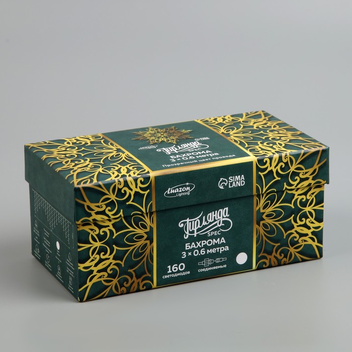 Габариты: 19 x 10 x 8,5 Страна: Китай В боксе: 50 шт Состав: Металл, пластик Материалы: металл, пластик Фасовка: по 1 шт Индивидуальная упаковка: Цветная коробка Сертификат: ЕАС Цвет нити гирлянды: Прозрачный Цвет свечения: Белый Применение: Уличное Вид лампы: Светодиодная Материал нити: ПВХ Тип подключения: УМС Вид гирлянды: Бахрома Вид светодиода: Суперяркие SMD светодиоды Количество жил: 3 Количество ламп: 160 Серия: SPEC Режим работы: Постоянное свечение, Задаётся контроллером Наличие блока питания: Нет Размер, м: 3 х 0.6 Насадки: Нет Вид насадки: Без насадок Ширина, м: 3 Высота, м: 0,6 Количество режимов: 1 Гарантийный срок, мес.: 12 Тематика праздника: Новый год Степень защиты: IP44 Температурный режим: от -30 до +35 °С Тип питания: От сети 220 В Фиксированная цена: Да