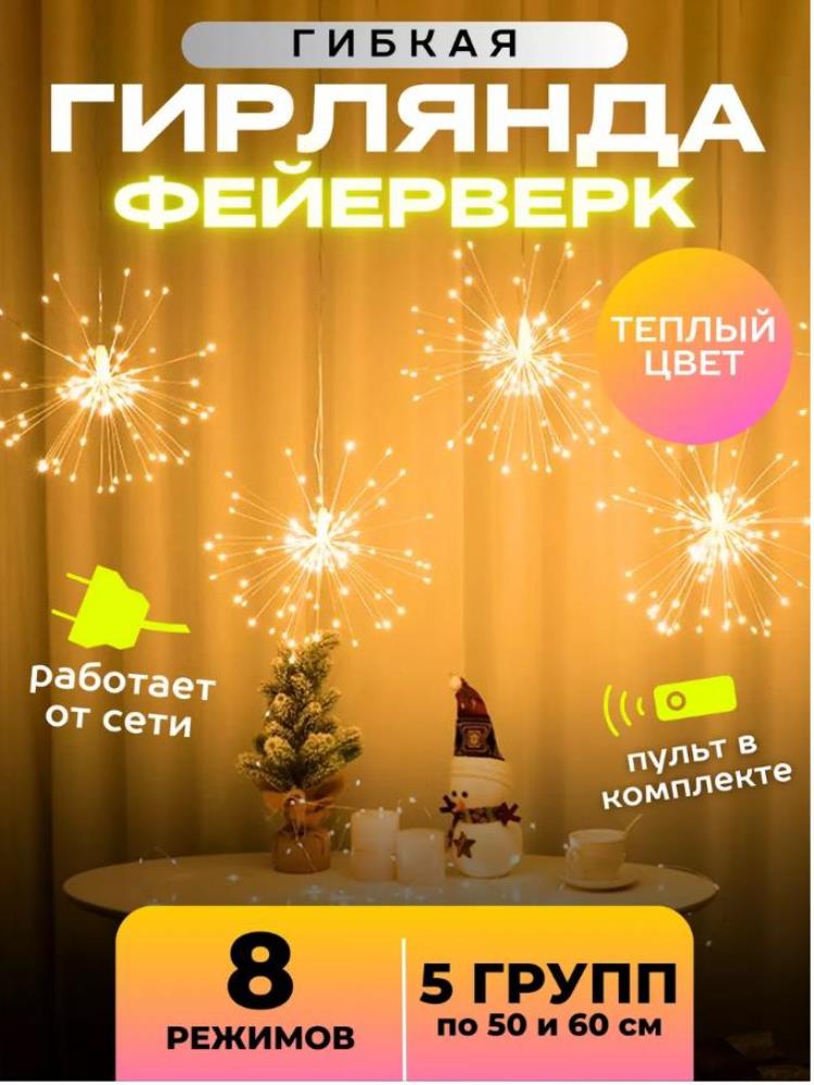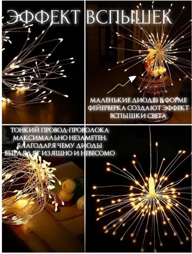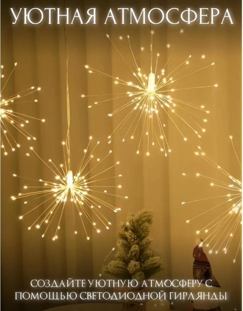 Гирлянда Фейерверк 3 метра, 220V, теплое свечение