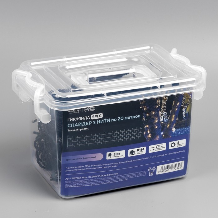 Габариты: 25 x 16 x 10 Страна: Китай В боксе: 10 шт Состав: Металл, пластик Материалы: металл, пластик Фасовка: по 1 шт Индивидуальная упаковка: коробка Сертификат: ЕАС Цвет нити гирлянды: Тёмный Цвет свечения: Фиолетовый Применение: Уличное Вид лампы: Светодиодная Материал нити: ПВХ Тип подключения: Комплект для подключения Вид гирлянды: Клип-лайт Вид светодиода: DIP Количество жил: 2 Количество ламп: 399 Серия: SPEC Режим работы: Задаётся контроллером Наличие блока питания: Да Насадки: Нет Длина, м: 20 Количество режимов: 8 Гарантийный срок, мес.: 12 Тематика праздника: Новый год Степень защиты: IP44 Температурный режим: от -10 до +35 °С Тип питания: 24 В Фиксированная цена: Да ![]() Комплектация