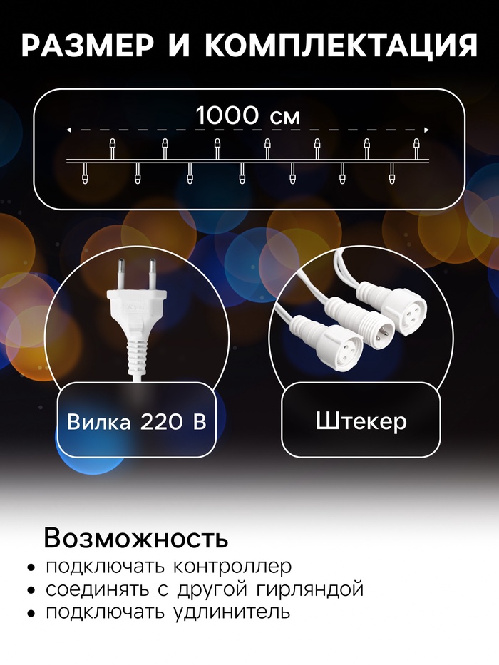 Габариты: 14 x 8 x 10 Страна: Китай В боксе: 30 шт Состав: Металл, пластик Материалы: металл, пластик Фасовка: по 1 шт Индивидуальная упаковка: Цветная картонная коробка Габариты товара: 15 см × 9 см × 8,5 см Сертификат: ЕАС Цвет нити гирлянды: Белый Цвет свечения: Белый Применение: Уличное Вид лампы: Светодиодная Материал нити: ПВХ Тип подключения: УМС Вид гирлянды: Гирлянда-нить Вид светодиода: DIP Количество жил: 3 Количество ламп: 100 Серия: SPEC Режим работы: Задаётся контроллером, Постоянное свечение Наличие блока питания: Нет Насадки: Нет Вид насадки: Без насадок Длина, м: 10 Количество режимов: 1 Гарантийный срок, мес.: 12 Тематика праздника: Новый год Степень защиты: IP44 Температурный режим: от -30 до +35 °С Тип питания: От сети 220 В ![]() Комплектация