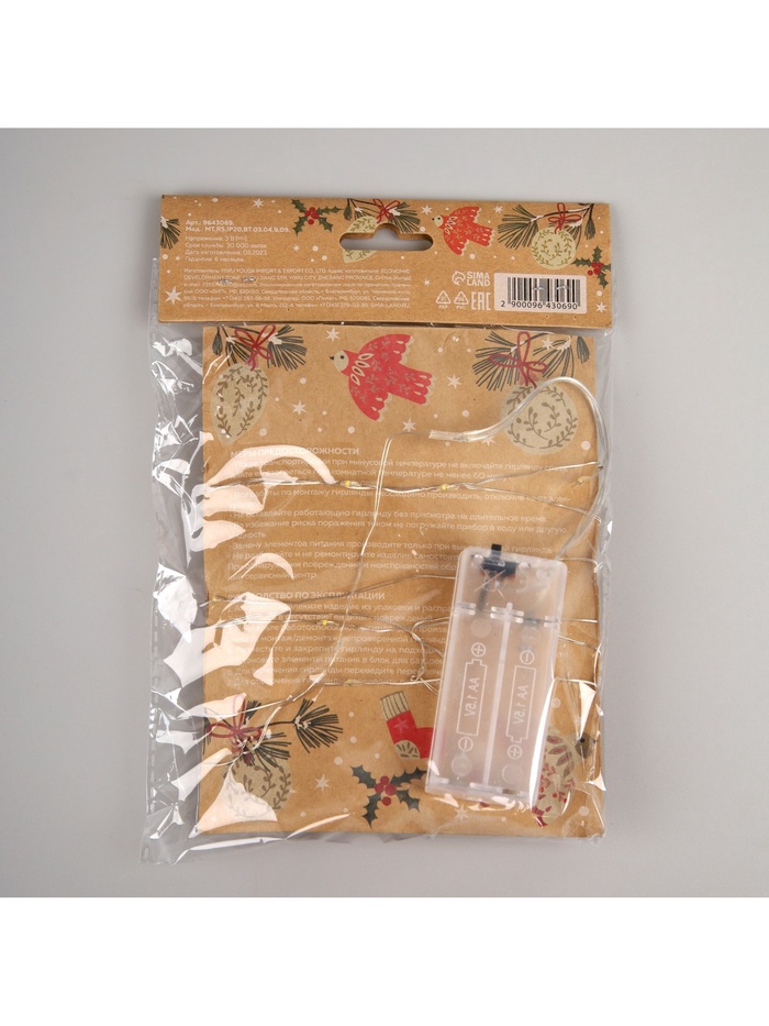 Габариты: 21 x 15 x 3,5 Страна: Китай В боксе: 96 шт Состав: Дерево, металл, пластик Материалы: дерево, металл, пластик Фасовка: по 1 шт Индивидуальная упаковка: Пакет (БОПП, полиэтилен, ПВХ, дой-пак) Сертификат: ЕАС Цвет нити гирлянды: Серебристый Цвет свечения: Тёплый белый Применение: Внутреннее Вид лампы: Светодиодная Материал нити: Лаковое покрытие Тип подключения: Батарейки Вид гирлянды: Гирлянда-нить Количество ламп: 20 Серия: DECOR Режим работы: Постоянное свечение Насадки: Да Длина, м: 2 Количество режимов: 1 Гарантийный срок, мес.: 12 Степень защиты: IP20 Типоразмер батареек: AA (LR6) Материал насадок: Дерево Температурный режим: от -10 до +35 °С Тип питания: От батареек Фиксированная цена: Да