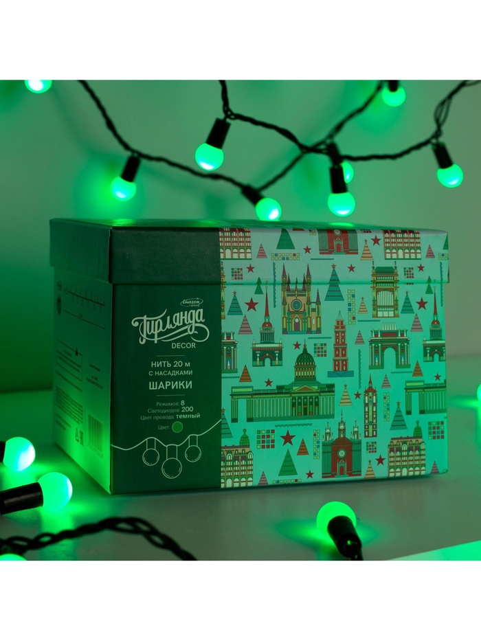 Габариты: 18 x 13 x 11,5 Страна: Китай В боксе: 25 шт Состав: Металл, пластик Материалы: металл, пластик Фасовка: по 1 шт Индивидуальная упаковка: Цветная картонная коробка Сертификат: ЕАС Цвет нити гирлянды: Тёмный Цвет свечения: Зелёный Применение: Уличное Вид лампы: Светодиодная Материал нити: ПВХ Тип подключения: С контроллером Вид гирлянды: Гирлянда-нить Вид светодиода: DIP с колпачком-насадкой Количество ламп: 200 Серия: DECOR Режим работы: Задаётся контроллером Наличие блока питания: Нет Насадки: Да Вид насадки: Шарики Длина, м: 20 Количество режимов: 8 Гарантийный срок, мес.: 12 Тематика праздника: Новый год Степень защиты: IP44 Температурный режим: от -30 до +35 °С Тип питания: От сети 220 В ![]() Комплектация