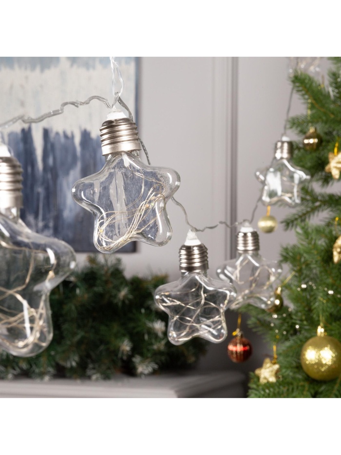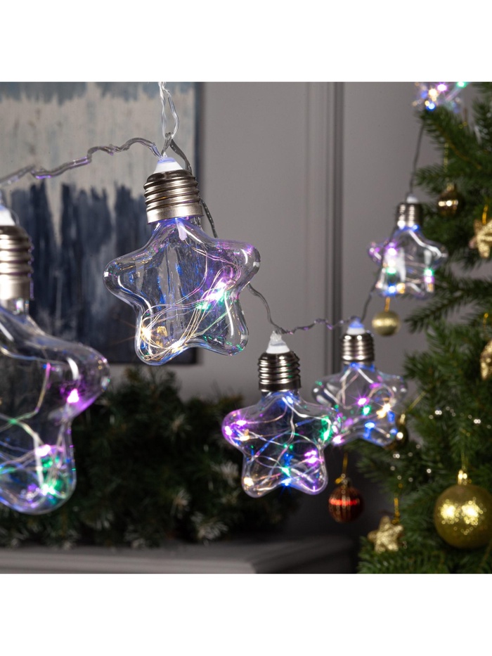 Гирлянда «Нить» 3 м с насадками «Лампочки звёздочки», IP20, прозрачная нить, 80 LED, свечение мульти, 8 режимов, 220 В