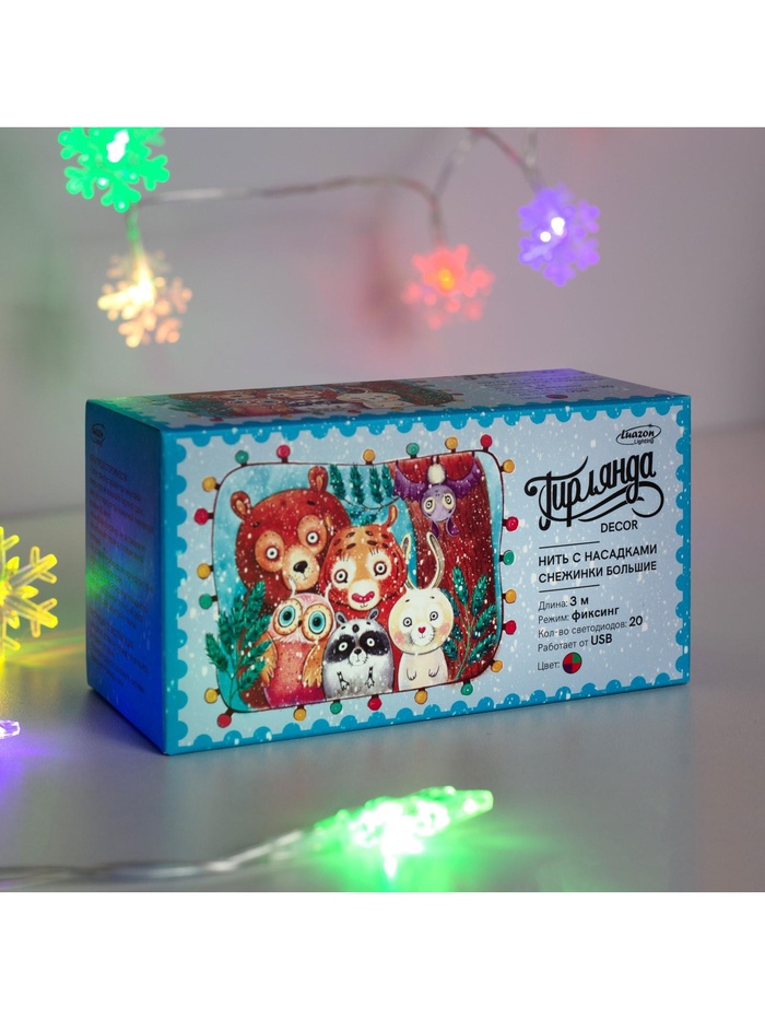 Габариты: 11 x 6 x 6 Страна: Китай В боксе: 100 шт Состав: Металл, пластик Материалы: металл, пластик Фасовка: по 1 шт Индивидуальная упаковка: Цветная картонная коробка Сертификат: ЕАС Цвет нити гирлянды: Прозрачный Цвет свечения: RG/RB Применение: Внутреннее Вид лампы: Светодиодная Материал нити: ПВХ Тип подключения: Шнур питания Вид гирлянды: Гирлянда-нить Количество ламп: 20 Серия: DECOR Режим работы: Мигание Наличие блока питания: Нет Насадки: Да Вид насадки: Снежинки Длина, м: 3 Количество режимов: 1 Гарантийный срок, мес.: 12 Тематика праздника: Новый год Степень защиты: IP20 Материал насадок: Пластик Температурный режим: от -10 до +35 °С Тип питания: От USB Фиксированная цена: Да ![]() Комплектация