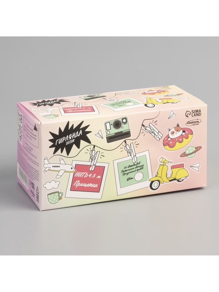 Габариты: 14 x 7,5 x 7 Страна: Китай В боксе: 80 шт Состав: Металл, пластик Материалы: металл, пластик Фасовка: по 1 шт Индивидуальная упаковка: Цветная картонная коробка Сертификат: ЕАС Цвет нити гирлянды: Прозрачный Цвет свечения: Белый Применение: Внутреннее Вид лампы: Светодиодная Материал нити: ПВХ Тип подключения: Шнур питания Вид гирлянды: Гирлянда-нить Количество ламп: 20 Серия: DECOR Режим работы: Постоянное свечение Наличие блока питания: Нет Насадки: Да Вид насадки: Прищепки Длина, м: 4,5 Количество режимов: 1 Гарантийный срок, мес.: 12 Тематика праздника: Новый год Степень защиты: IP20 Материал насадок: Пластик Температурный режим: от -10 до +35 °С Тип питания: От сети 220 В Фиксированная цена: Да ![]() Комплектация