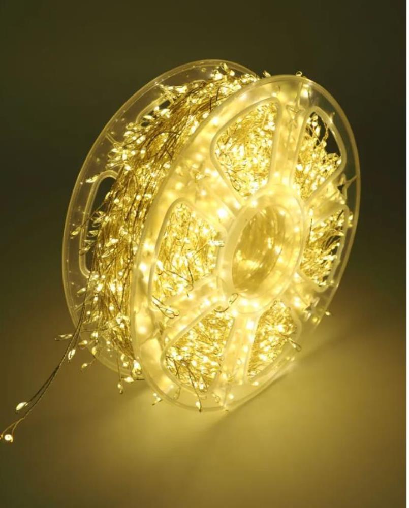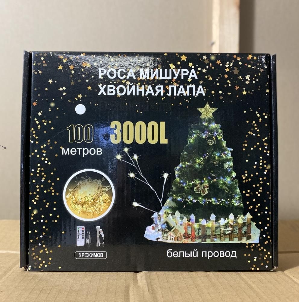Гирлянда нить МИШУРА, хвойная лапа, (провод БЕЛЫЙ) с ПУЛЬТОМ, свечение теплое - желтое