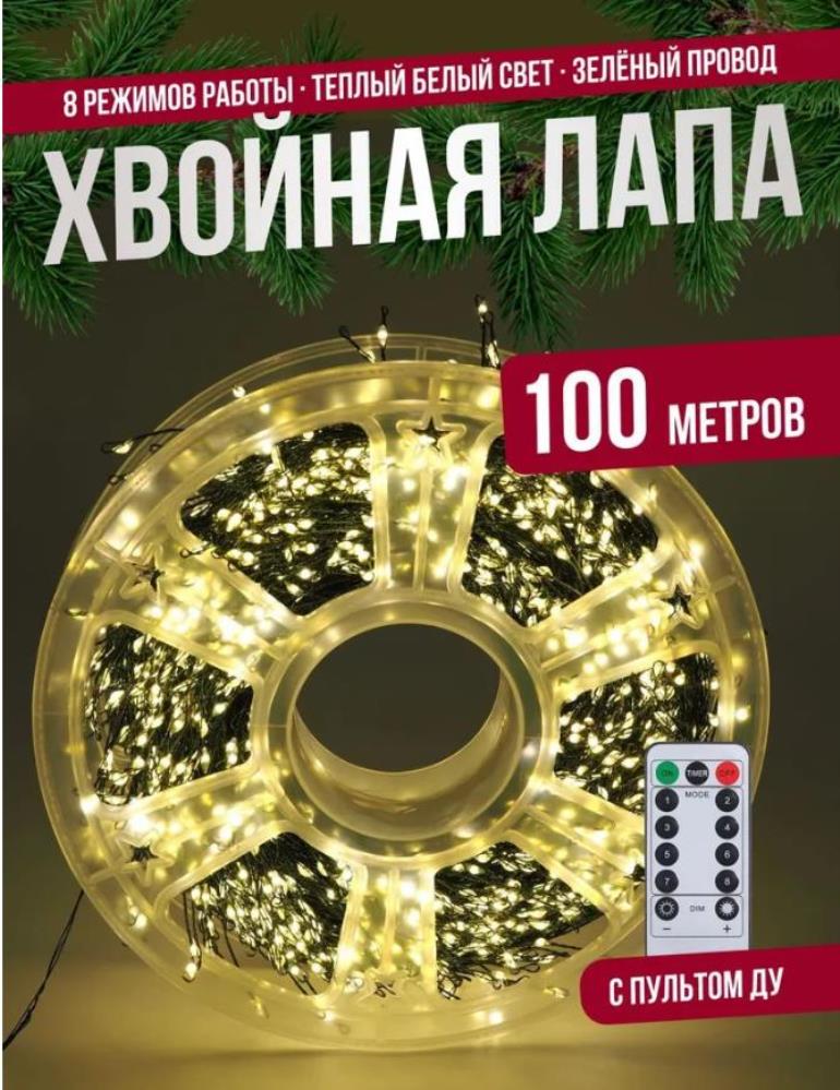 Гирлянда нить МИШУРА, хвойная лапа, (провод ЗЕЛЕНЫЙ) с ПУЛЬТОМ, свечение теплое - желтое Гирлянда хвойная лапа с эффектом роса придает комнате новогодний шарм. Идеальное украшение для создания праздничной атмосферы, она наполняет пространство неповторимыми огоньками. Светодиодный светящийся элемент делает её современным атрибутом любого праздника. Украсьте елочку этим изделием, добавив ей яркости и блеска. Форма напоминает фейерверк, взрывающийся на небе тысячами разноцветных искр. Такой эффект создает впечатление настоящего волшебства в любой комнате. Новогодняя гирлянда обладает удивительным дизайном, напоминающим конский хвост. Этот декоративный элемент создает атмосферную иллюминацию как внутри помещения, так и снаружи. Используйте её на балконе для освещения окна или декора вашего жилого пространства. Её уникальные элементы представляют собой сочетание росы и сеть лампочек, создавая магические огоньки среди веток вашей зеленой красавицы. Они придают ёлке праздничный вид и превращают ее в центр внимания на Новый год. Светодиодные компоненты позволяют использовать это новогоднее украшение много раз подряд благодаря надежности и долговечности диодов. Экономичное энергопотребление делает эту гирлянду практичным выбором для долгих зимних вечеров. Легкость конструкции позволяет разместить её даже на миниатюрной елке или добавить высоко на верхушку дерева дополнительные светящиеся акценты. Гибкостью отличается она также в способах установки: можно уложить вокруг шероховатых поверхностей или обвить пышные хвойные ветки. Мишура нежно окутывает лапу ели, придавая ей романтический блеск волшебства новогодней ночи. Эффект будет таким же захватывающим под открытым небом на заснеженном дереве или под крышей уютного дома рядом с камином. Изделие хорошо работает как самостоятельная декоративная композиция или часть большего ансамбля украшений для Нового года. Можно комбинировать её с другими украшениями для усиления эффекта фейерверка через разнообразие света и формы. Комментарии к товару