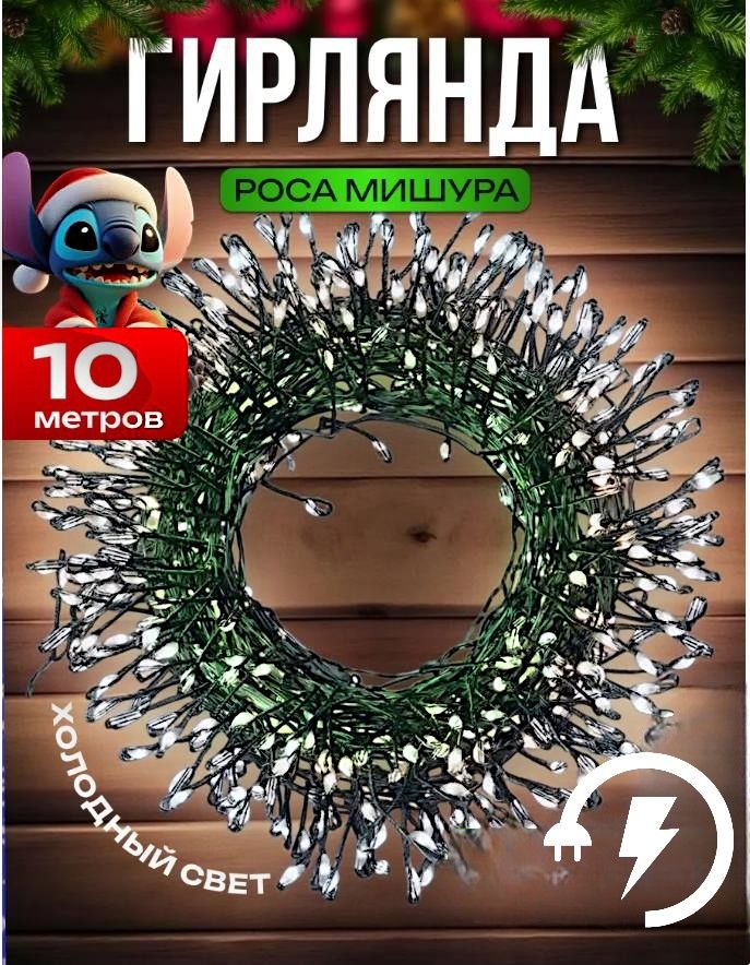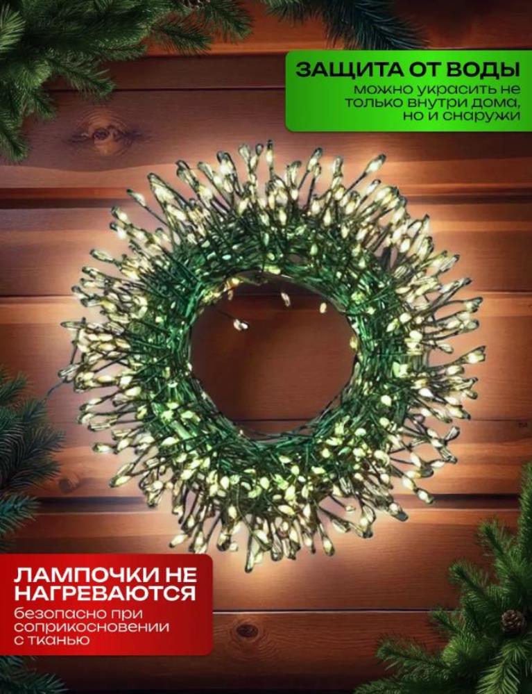 Гирлянда Пушистая роса 10м. белое свечение, 8 режимов, зелёный провод 220v