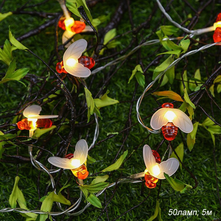 Гирлянда световая садовая с питанием от солнечных элементов Пчелка / FN-703 /уп 72/ 5 метров 50 ламп