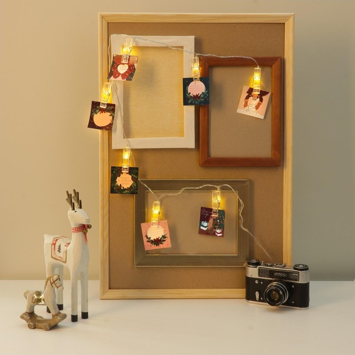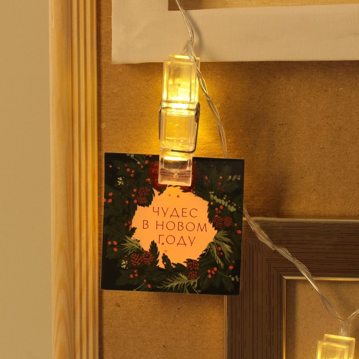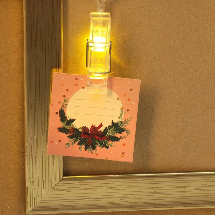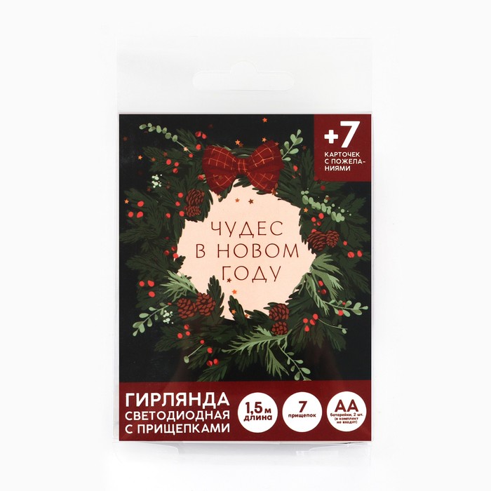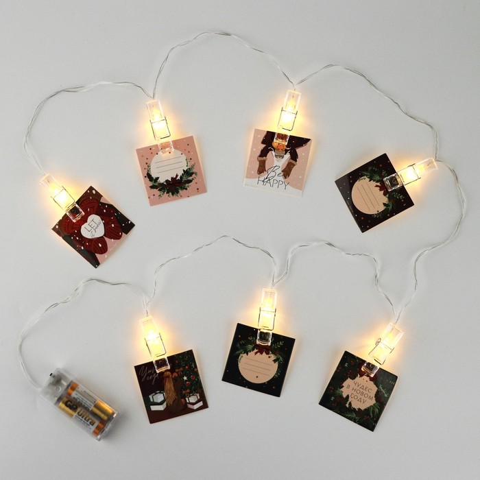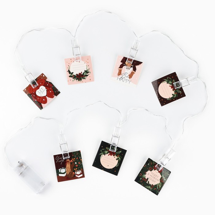 Габариты: 13 x 8 x 6 Страна: Китай В боксе: 128 набор Состав: Бумага, металл, пластик, светодиоды Материалы: бумага, металл, пластик, светодиоды Фасовка: по 1 набор Индивидуальная упаковка: PVC коробка Сертификат: ЕАС Цвет нити гирлянды: Прозрачный Цвет свечения: Жёлтый Применение: Внутреннее Вид лампы: Светодиодная Тип подключения: Батарейки Вид гирлянды: Гирлянда-нить Количество ламп: 7 Режим работы: Постоянное свечение Наличие блока питания: Да Насадки: Да Набор: Нет Цвет: Разноцветный Длина, м: 1,5 Количество режимов: 1 Символ года: Нет Тематика праздника: Новый год Возраст: Любой Материал: Картон, Пластик Тип питания: От батареек Фиксированная цена: Да Гирлянда с прищепками — красивый и стильный атрибут праздничного оформления. Она будет отлично смотреться и наполнять дом уютом. Данная гирлянда может стать небольшим подарком для ваших друзей и близких, что сделает их праздник особенно волшебным. Гирлянда выполнена в современном стиле и подходит под тематику Нового года. Комментарии к товару