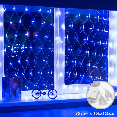 Гирлянда светодиодная Сетка 1,5х1,5 м, 96 LED 8 режимов холодный синий / L120 /уп 100/коробка