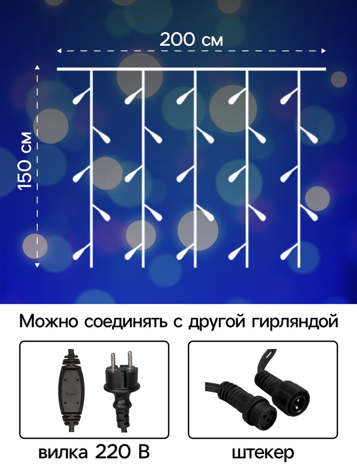 Габариты: 25,5 x 15 x 18 Страна: Китай В боксе: 6 шт Состав: Металл, пластик Материалы: металл, пластик Фасовка: по 1 шт Индивидуальная упаковка: Цветная картонная коробка Габариты товара: 25,5 см × 15 см × 17,5 см Сертификат: ЕАС Цвет нити гирлянды: Тёмный Цвет свечения: Синий Применение: Уличное Вид лампы: Светодиодная Материал нити: Каучук Тип подключения: Шнур питания, УМС Вид гирлянды: Занавес Вид светодиода: DIP с влагозащищенным колпачком типа «М» Количество жил: 2 Количество ламп: 300 Серия: PRO Режим работы: Постоянное свечение Размер, м: 2 х 1.5 Насадки: Нет Ширина, м: 2 Высота, м: 1,5 Количество режимов: 1 Гарантийный срок, мес.: 12 Тематика праздника: Новый год Степень защиты: IP65 Температурный режим: от -40 до +40 °С Тип питания: От сети 220 В ![]() Комплектация