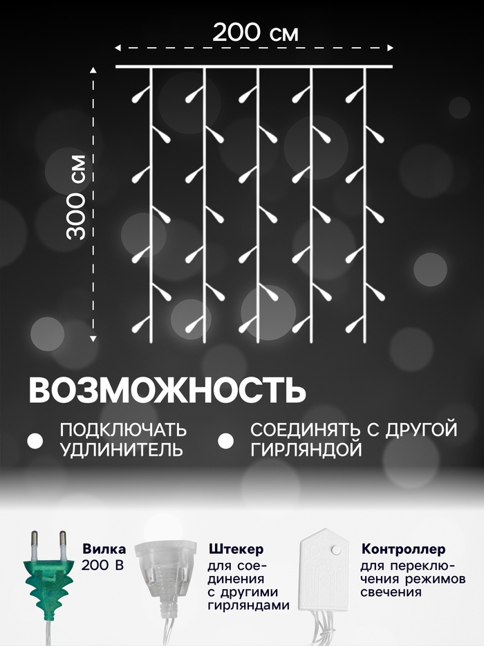 Габариты: 18 x 16,5 x 9,5 Страна: Китай В боксе: 18 шт Состав: Металл, пластик Материалы: металл, пластик Фасовка: по 1 шт Индивидуальная упаковка: Цветная картонная коробка Сертификат: ЕАС Цвет нити гирлянды: Прозрачный Цвет свечения: Белый Применение: Внутреннее Вид лампы: Светодиодная Материал нити: ПВХ Тип подключения: С контроллером, УМС вилка Вид гирлянды: Занавес Количество ламп: 720 Серия: ECO Режим работы: Задаётся контроллером Наличие блока питания: Нет Размер, м: 2 х 3 Насадки: Нет Вид насадки: Без насадок Ширина, м: 2 Высота, м: 3 Количество режимов: 8 Гарантийный срок, мес.: 12 Тематика праздника: Новый год Степень защиты: IP20 Температурный режим: от -10 до +35 °С Тип питания: От сети 220 В Фиксированная цена: Да ![]() Комплектация