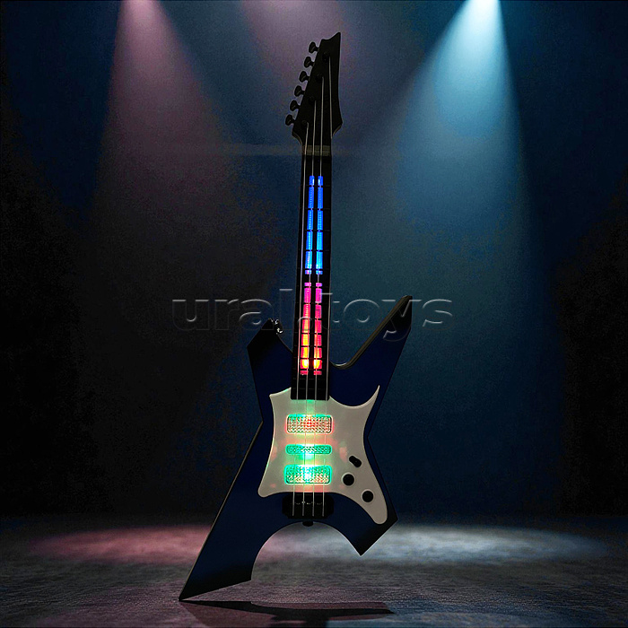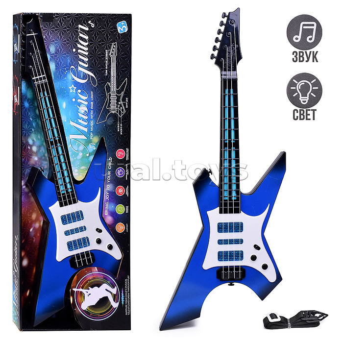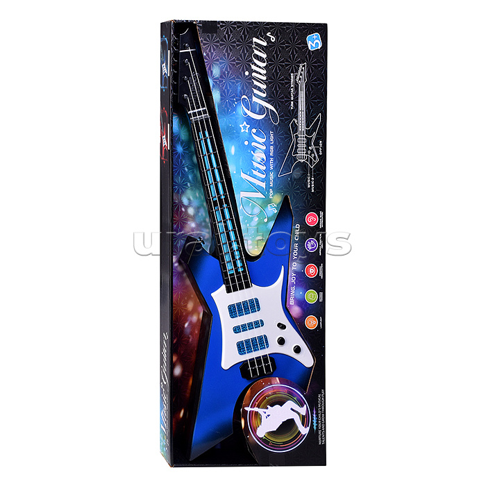 • Размеры игрушки: 19 х 4 х 60 см. • 4 пластиковые струны. • Регулируемое натяжение струн. • Функции (при нажатии на кнопки): - мелодии. - подсветка. • Для работы нужны 3 батарейки "АА" (не входят в комплект) • Материал: пластик. • Соответствует требованиям безопасности продукции. • Для детей от 3-х лет.