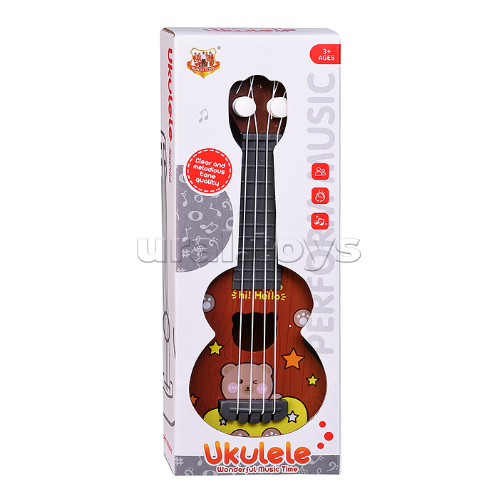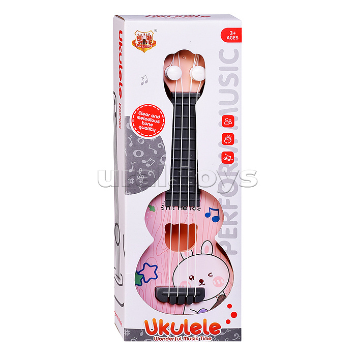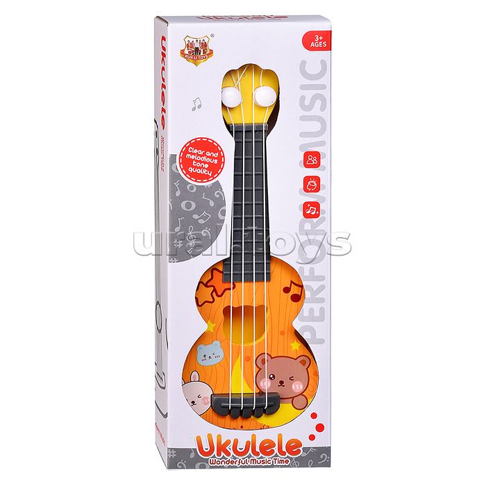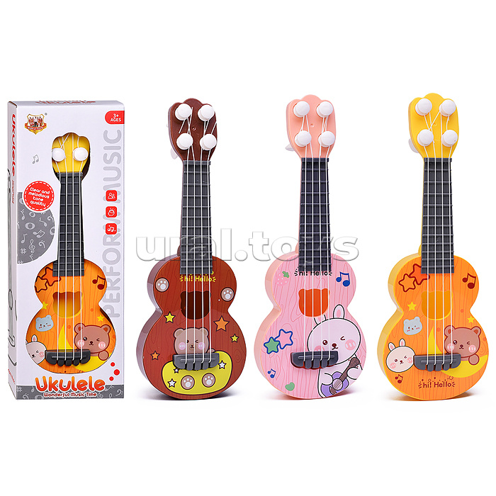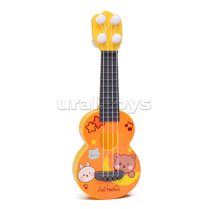 • Размеры игрушки: 24,5х9х3 см. • 4 пластиковые струны. • Регулируемое натяжение струн. • Материал: пластик. • Соответствует требованиям безопасности продукции. • Для детей от 3-х лет.