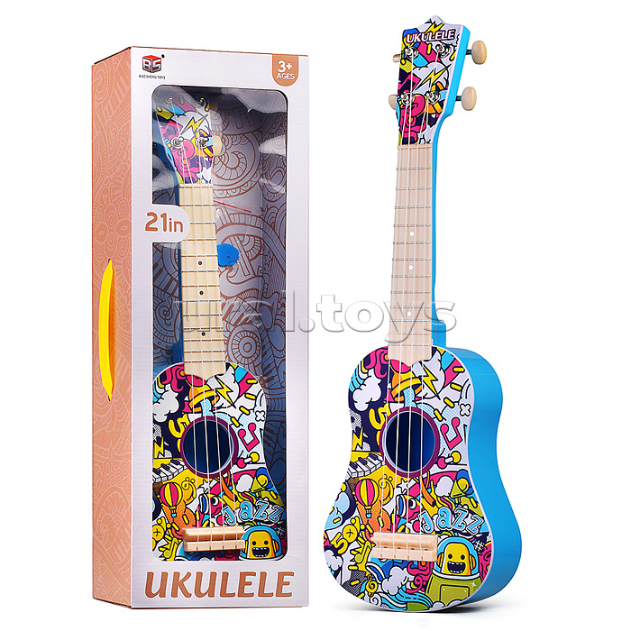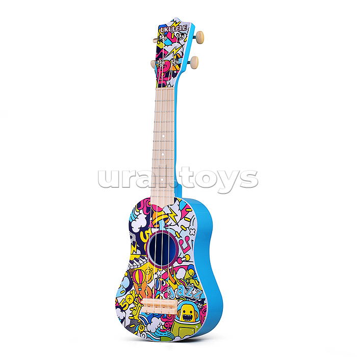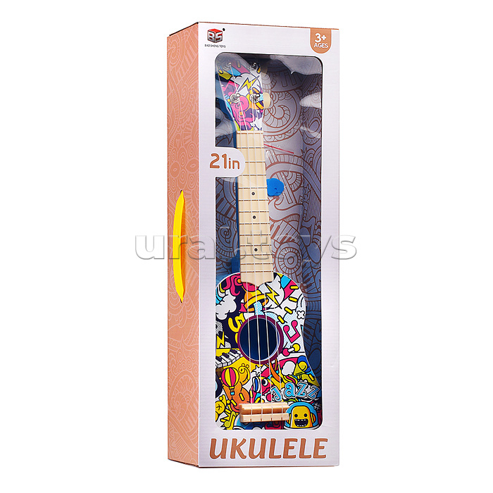 • Размеры игрушки: 55х17х6,5 см. • 4 пластиковые струны. • Регулируемое натяжение струн. • Пластиковый медиатор в комплекте. • Материал: пластик. • Соответствует требованиям безопасности продукции. • Для детей от 3-х лет.