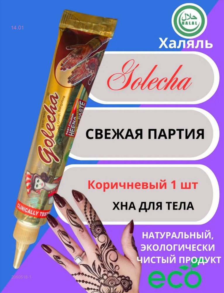 Голеча натуральная хна для мехенди, цвет коричневый,в тубе 25г. Golecha. Комментарии к товару