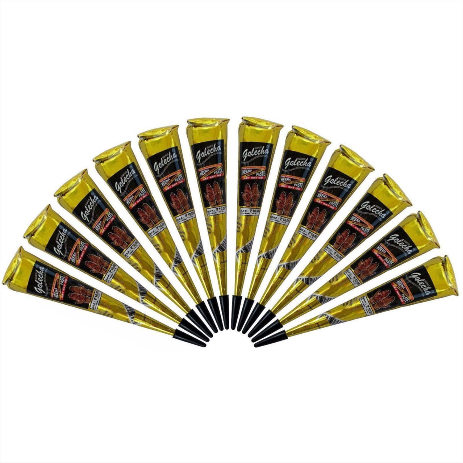 Brand: Golecha Материал упаковки: картон Продается как: уп. Упаковка: коробка «Хна в конусе Golecha» чёрного цвета — профессиональная фабричная смесь для нанесения рисунков на тело. Можно использовать детям, беременным женщинам и людям с чувствительной кожей. Комментарии к товару