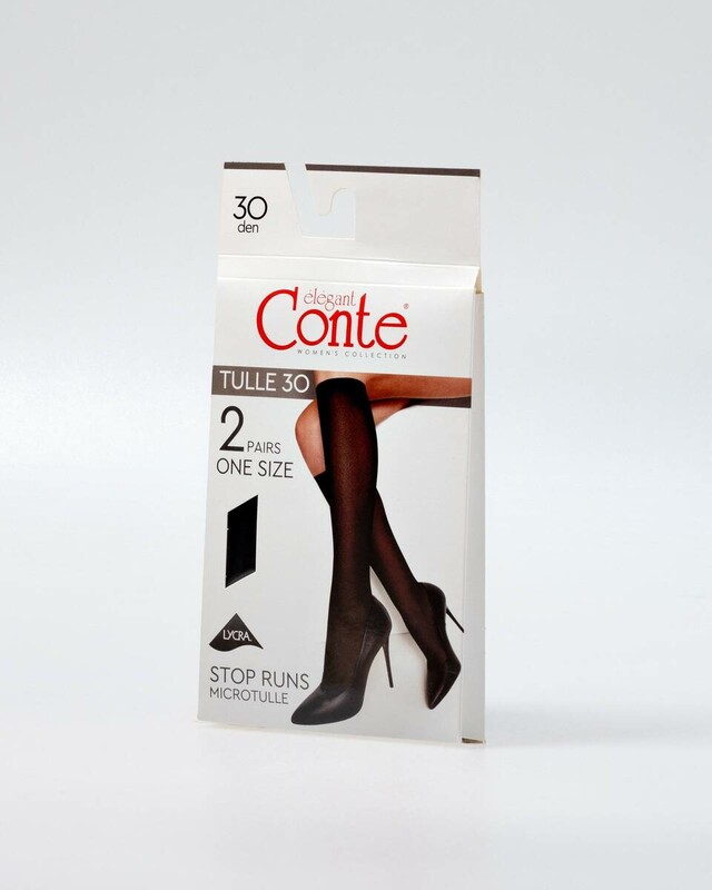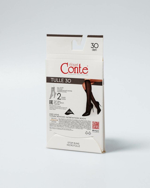 Тонкие, матовые и экстра прочные гольфы с эффектом тюля связаны по уникальной технологии прессового плетения «Stop runs». Такое плетение позволяет останавливать спустившиеся петли, препятствуя образованию «стрелок».