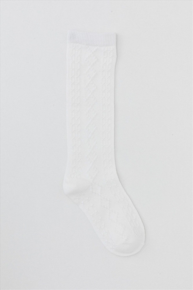 Гольфы для девочки, связаны ажурным геометрическим узором.