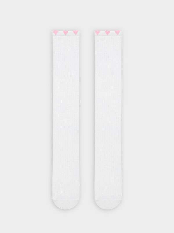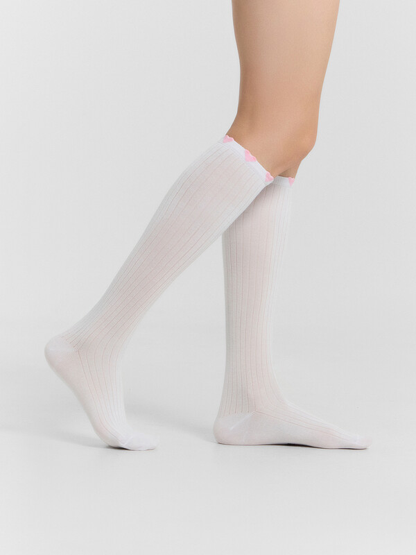 Производитель: Mark Formelle Рис.3212 Детские однотонные гольфы выполненные перекидным переплетением (лапша) 5:1 и пикотом на бортике в виде сердечек.