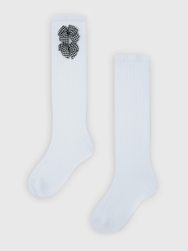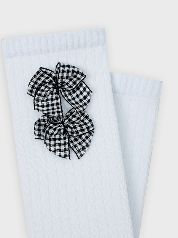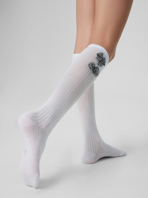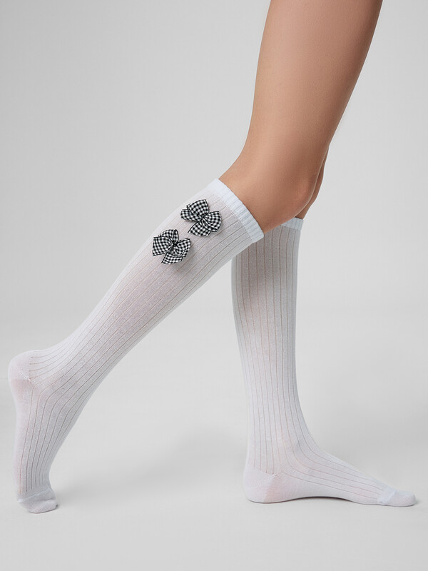 Детские однотонные гольфы выполненные перекидным переплетением (лапша) 5:1 с пришивными бантиками.