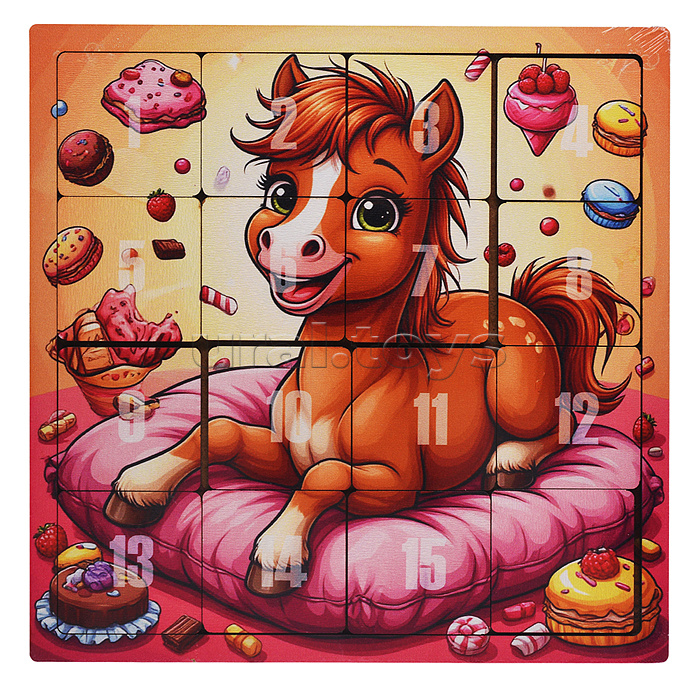 Головоломка Пятнашки "Жеребёнок со сладостями"