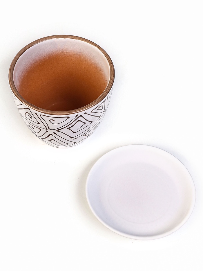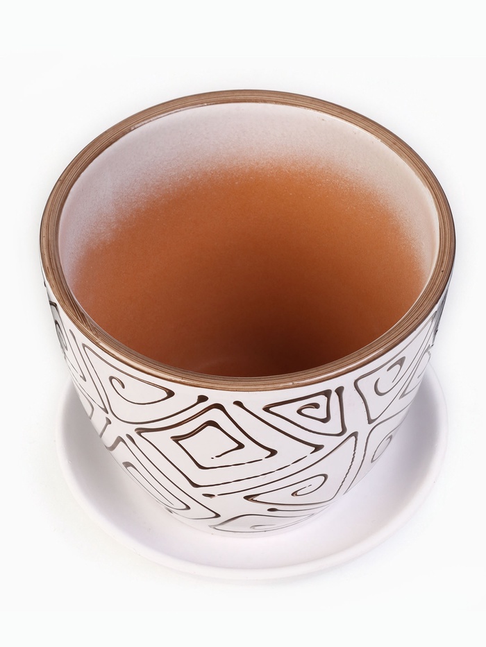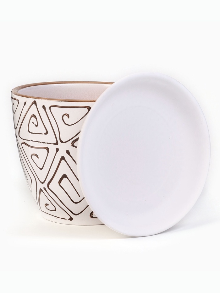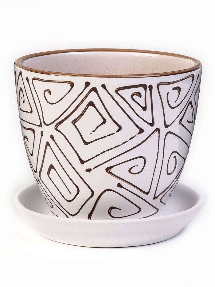 Керамический горшок «Абстракция» с поддоном — это аккуратный горшок для размещения растений в ограниченном пространстве. Чёткая форма и ритмичный орнамент делают изделие самостоятельным элементом оформления, не отвлекая внимание от самого растения. Горшок подходит для использования дома и на рабочем месте.