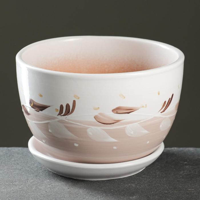 Керамический горшок в бежево-белой гамме — спокойный элемент декора с мягким оттенком и аккуратной формой. Сочетание тёплого бежевого тона с белыми акцентами создаёт нейтральный образ, который легко вписывается в жилое пространство и не перетягивает внимание на себя.