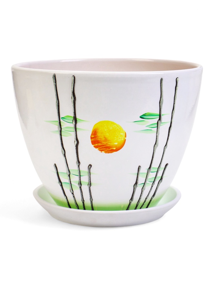Керамический горшок «Азия» объёмом 8 литров - идеальное решение для крупных комнатных растений. С диаметром 29,5 см и высотой 23 см он создан для пальм, фикусов лирата или монстер. Белоснежная глазурь придаёт элегантность, а глубокий поддон надёжно защищает от протекания. Толстостенная керамика гарантирует устойчивость даже для самых массивных растений.