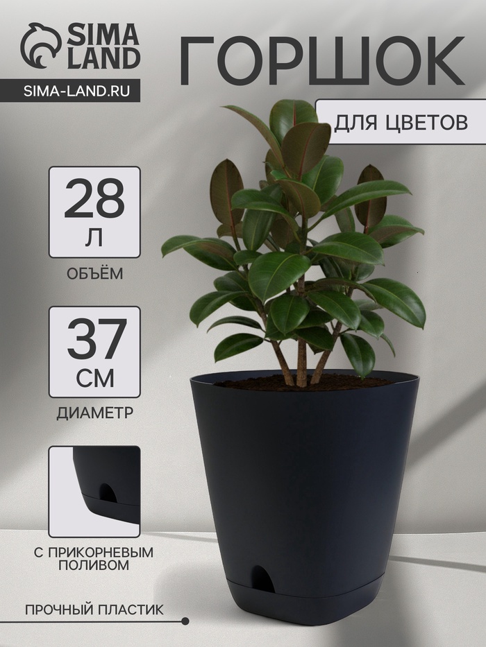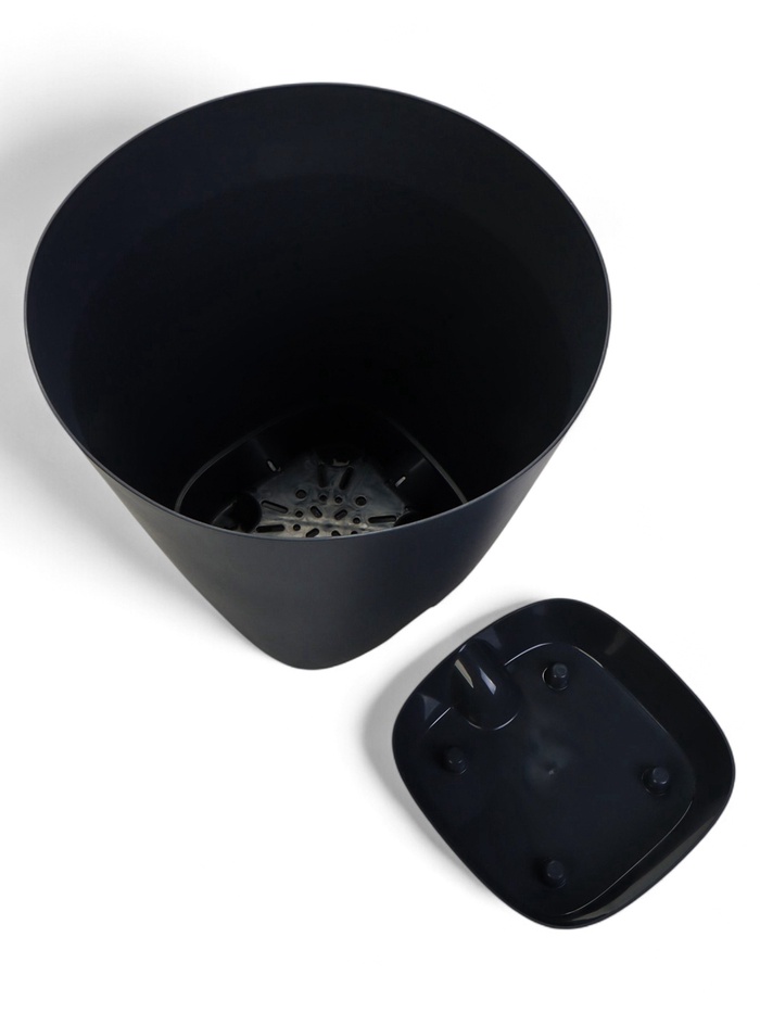 Графитовый пластиковый горшок для цветов «Гранд» с прикорневым поливом. Профессиональное решение для крупных комнатных растений. Объем 28 литров, диаметр 37 см, высота 38 см. В комплекте съемный поддон.