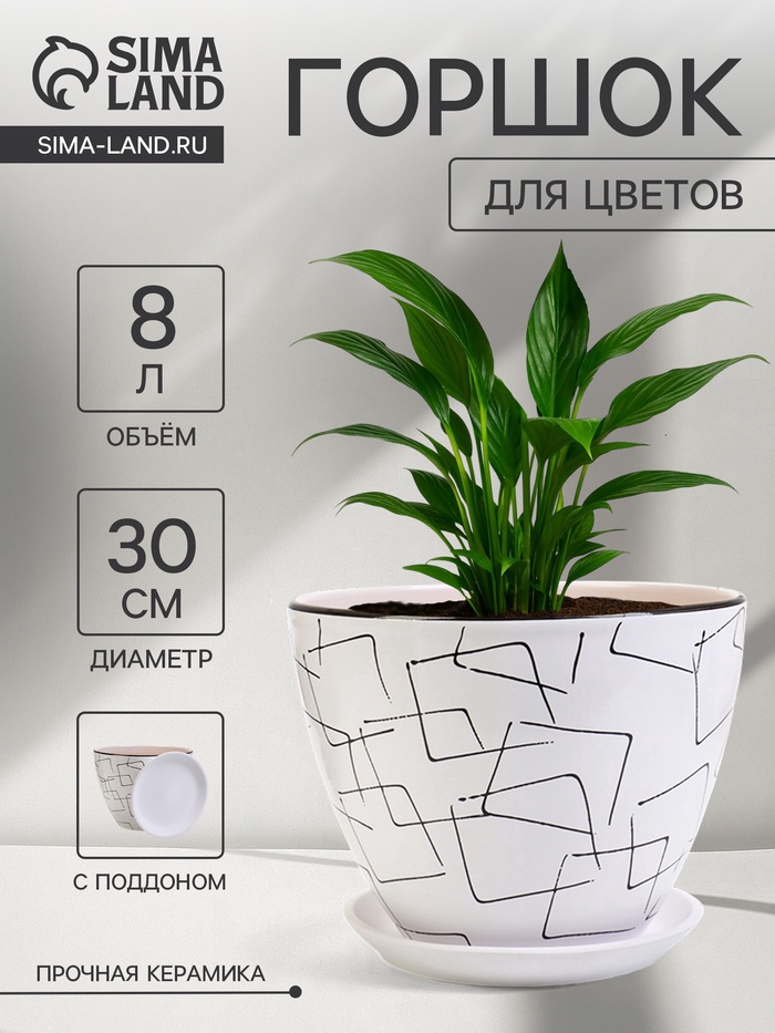 Керамический горшок «Иллюзия» объёмом 8 литров — стильное решение для крупных комнатных растений. С диаметром 30 см и высотой 23 см идеально подходит для пальм, монстер и других солидных растений. Белоснежный цвеь создаёт эффект чистоты и простора, а глубокий поддон надёжно защищает от протекания. Качественная керамика гарантирует устойчивость и долговечность.